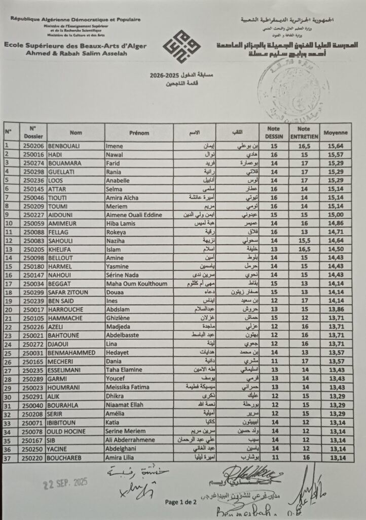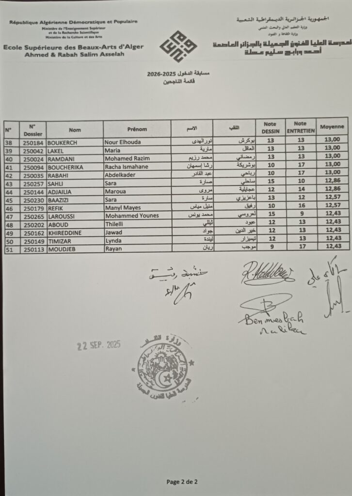 Les candidats admis au concours dont les noms figurent dans la liste ci-dessous doivent finaliser leur inscription au service scolarité de l’ESBA avant le 30/09/2025 dernier délai.