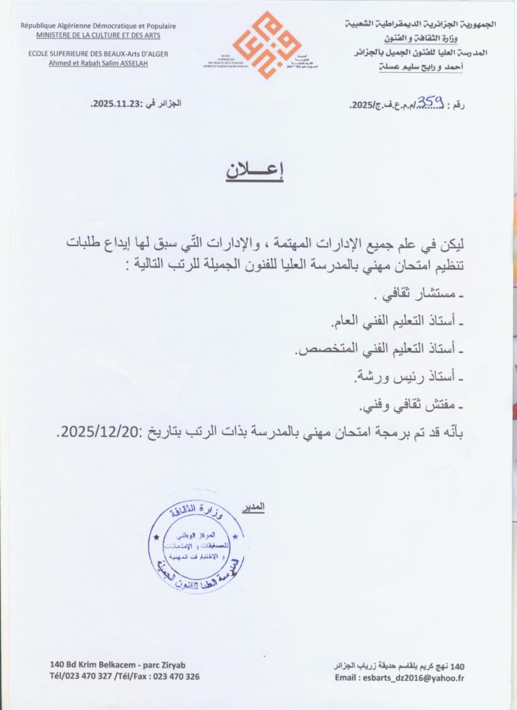© 2004-2025 Ecole Supérieure des Beaux-arts d'Alger. Tous droits réservés.